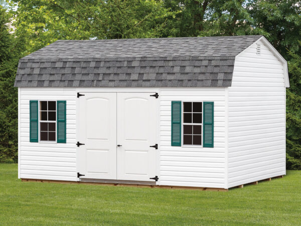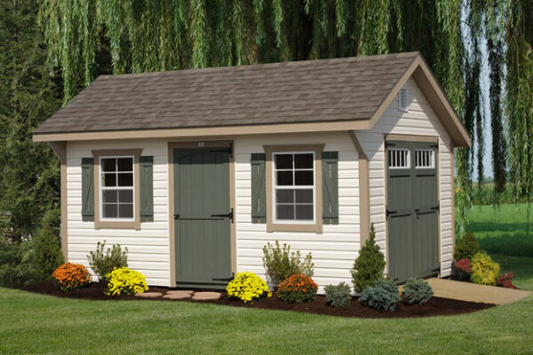 The classic, or Cape Cod shed, can be customized with a variety of door and window styles, or even architectural details such as dormers and cupolas.