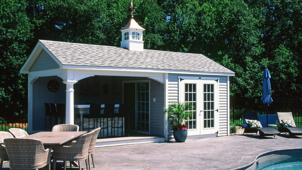 Amish pool houses embody a perfect blend of traditional craftsmanship and modern functionality, offering a charming and practical addition to outdoor living spaces. These structures, meticulously crafted by Amish artisans, often showcase the distinctive woodworking skills and attention to detail that characterize Amish construction. From the sturdy framing to the intricately designed doors and windows, every element of an Amish pool house reflects a commitment to quality that transcends passing trends. With durable materials like cedar or redwood, these pool houses not only stand as architectural statements but also provide a functional and aesthetically pleasing space for poolside activities.